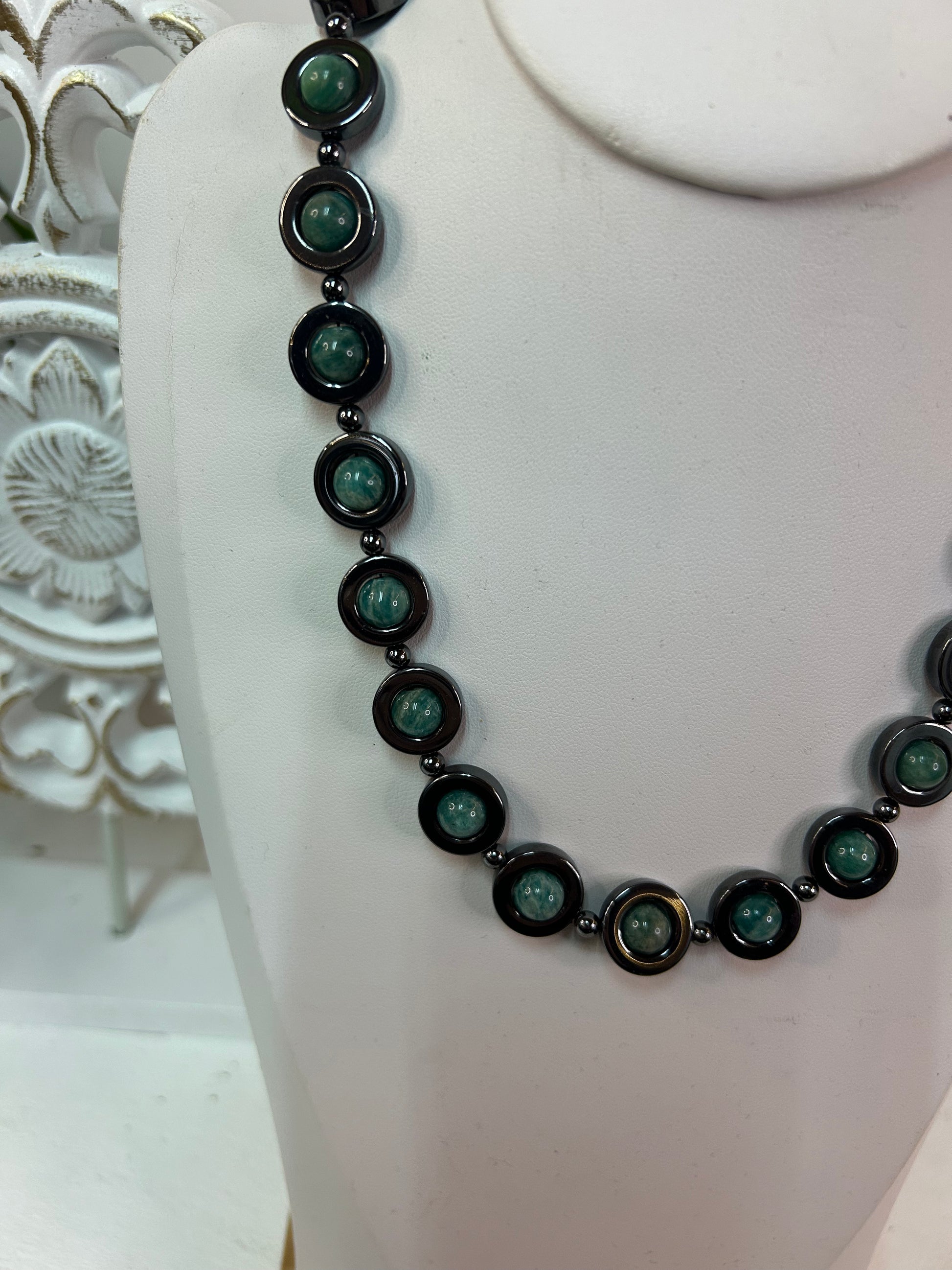 Amazonit Hämatit Silber Collier / Kette - Handmade - Schmuck