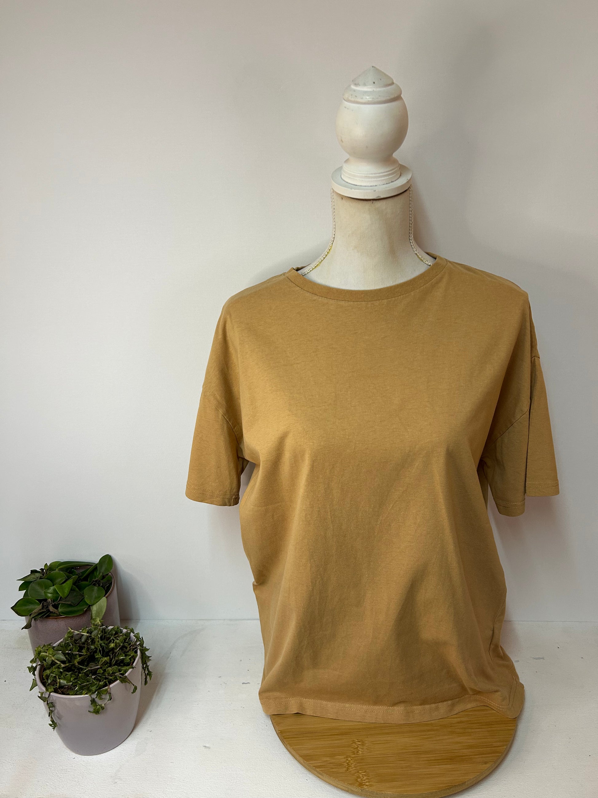Beiges Basic-Damen-T-Shirt mit Rundhalsausschnitt - Manguun - Gr. M / 38 - L / 40