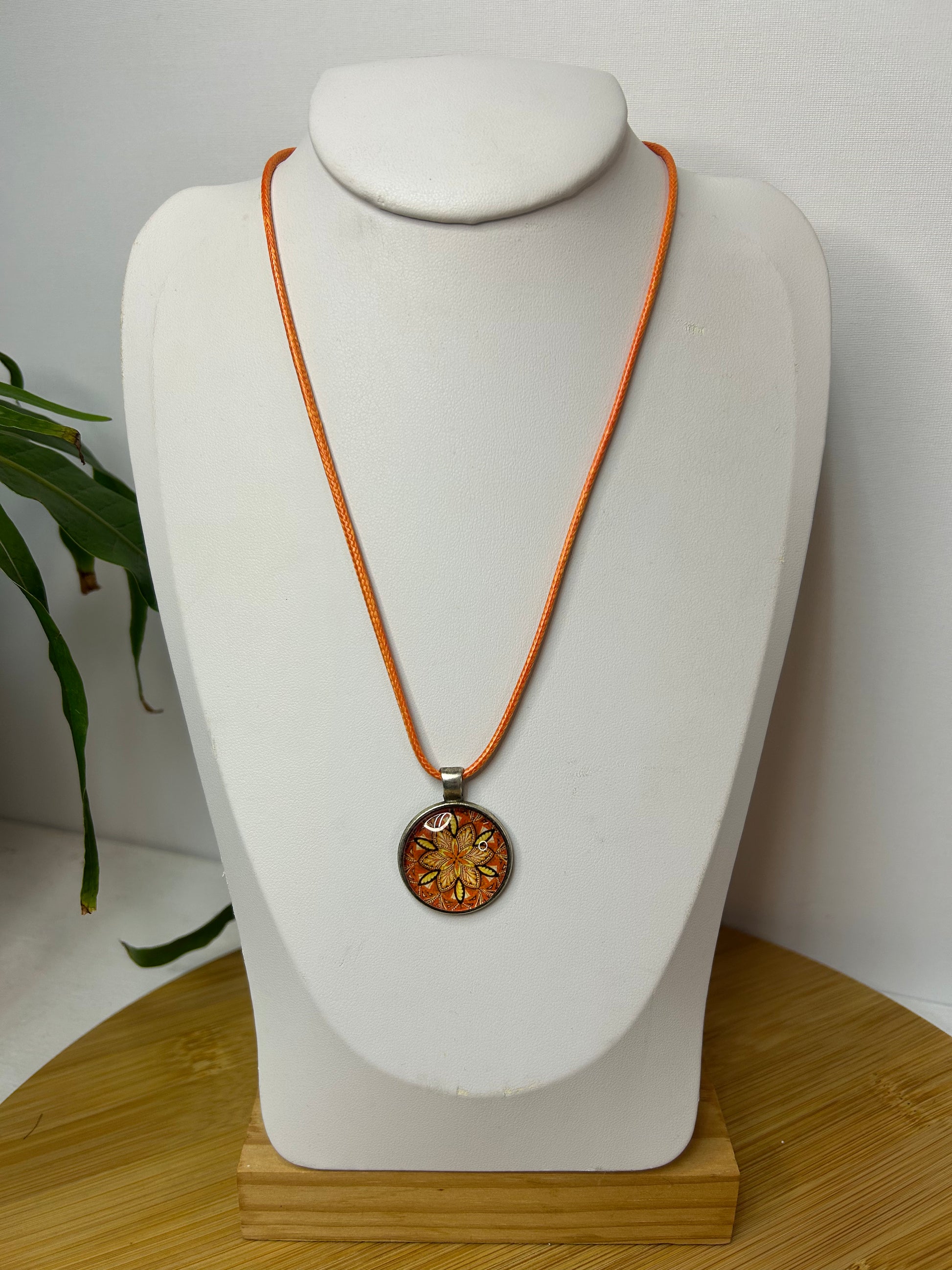Cabochon Kette mandala Orange & Braun - Schmuck - Handgemacht