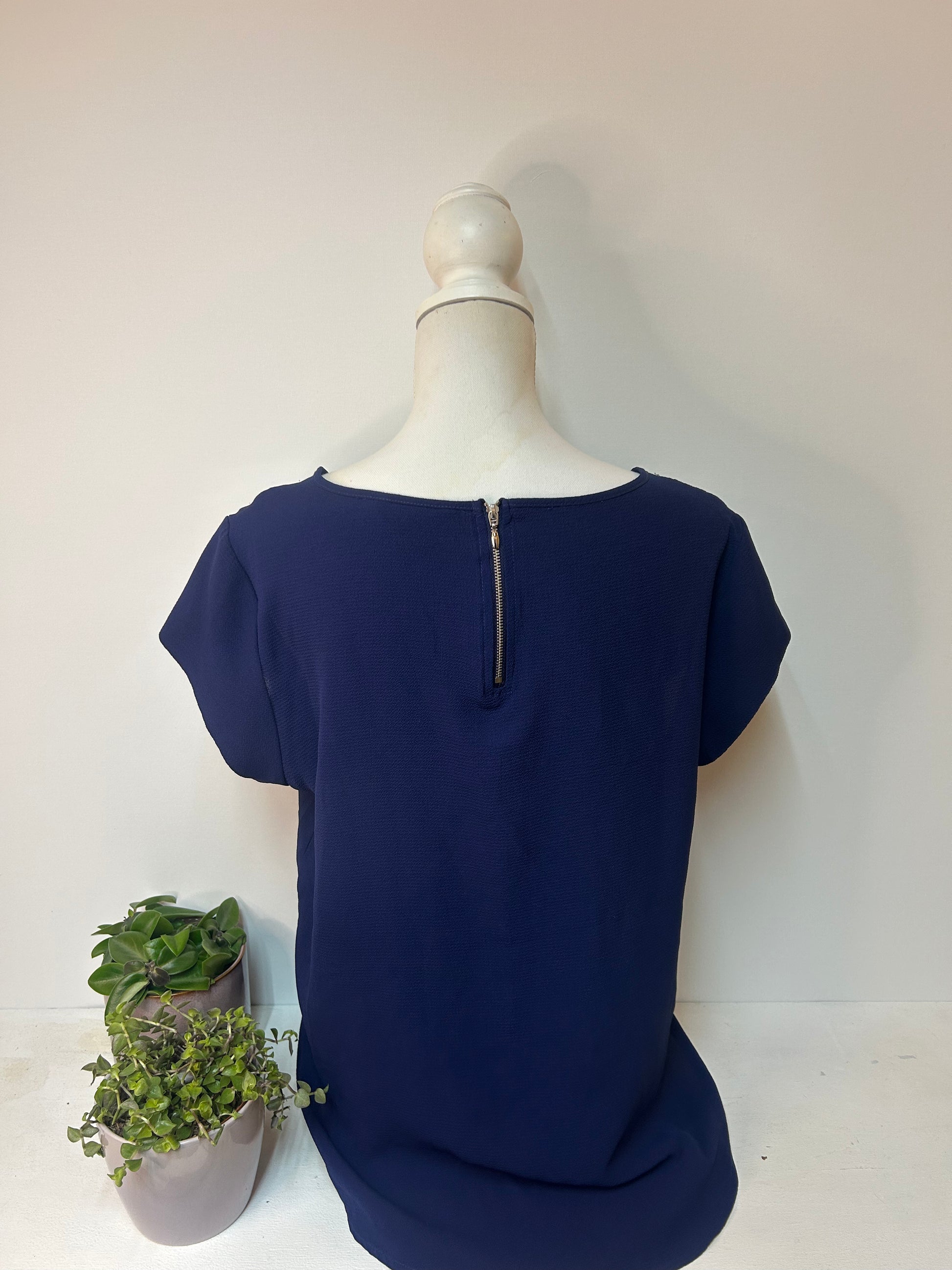 Dunkelblaue Damenbluse mit Rundhalsausschnitt & kurzen Ärmeln - ONLY - Gr. L / 40