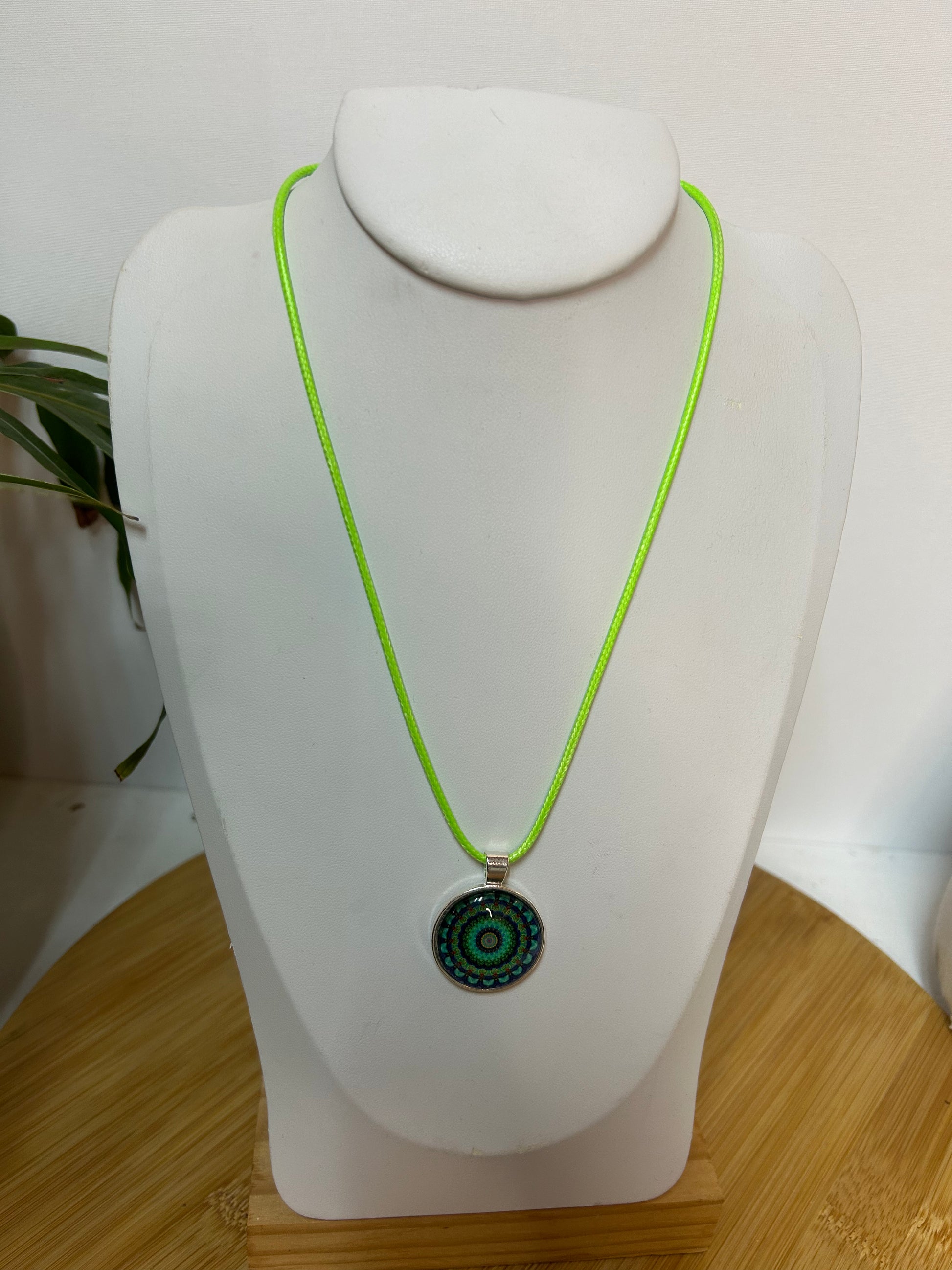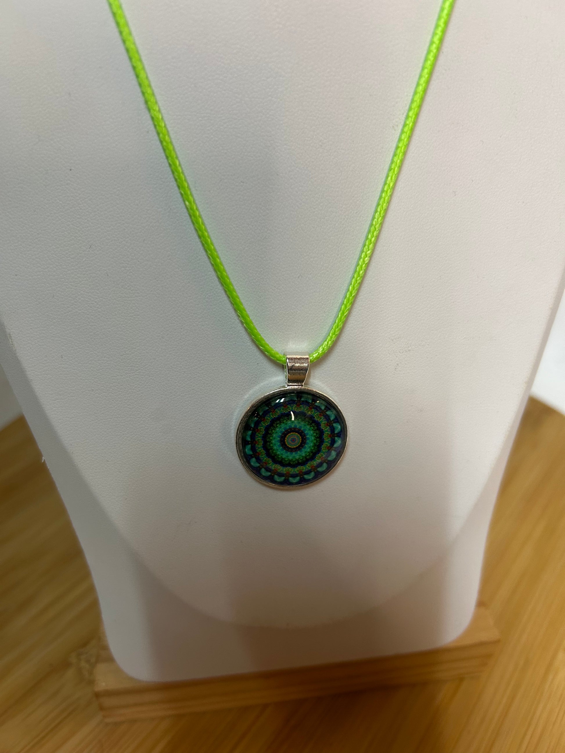 Cabochon Kette Mandala Rot,Grün & Blau Metallfassung - Schmuck - Handgemacht