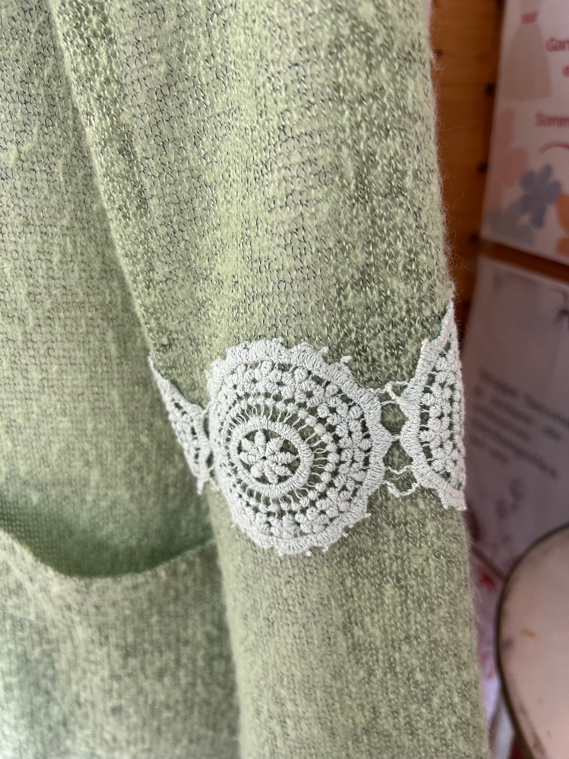 Damen Strickjacke in Grün mit Spitzen-Details - Imagine - Gr. L / 40 - XL / 42
