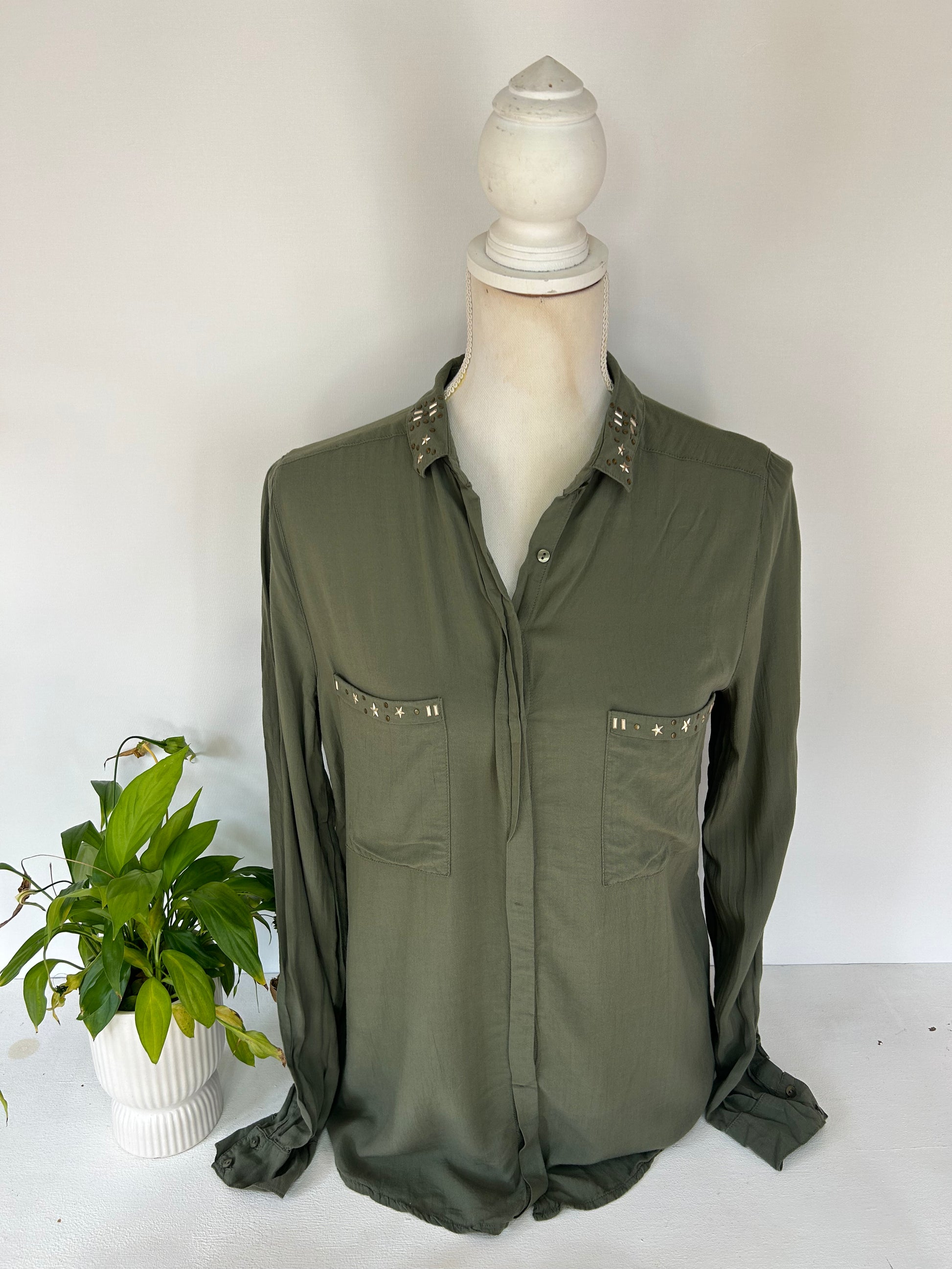 Khakigrünes Blusenhemd mit Nieten Details - promod - Gr. L